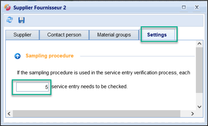 For the verification of the service entries, a sampling procedure can be set up for a supplier. Accordingly, for suppliers for whom you maintain the sample value in the address details, the sampling procedure would apply. Each service entry is automatically released up to the entered number. For all other suppliers where the value is not maintained, every service entry must continue to be checked.