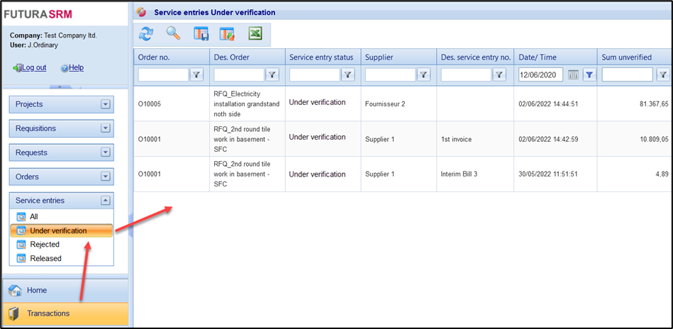 If a service entry is in the status "Verification", it is currently on approver’s side. In the meantime, additional service entries can be created, but they cannot be sent to the approver, until the most recent service entry has been released.