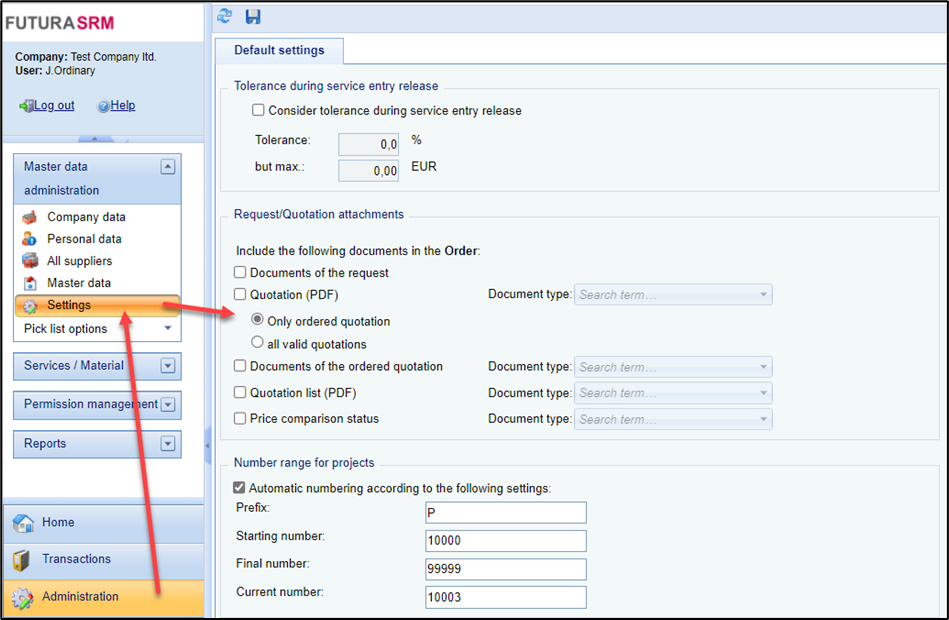 Please note that you only make all administrative settings if no user is logged in. Administrative settings should be made once at the beginning of use. Otherwise, it could lead to processing errors.