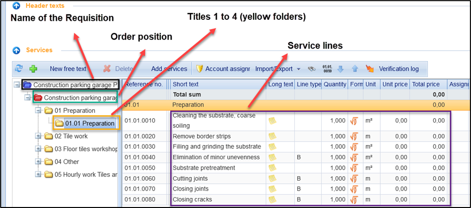 If you have selected a folder, the corresponding elements are displayed on the right, i.e., subfolders or service lines.