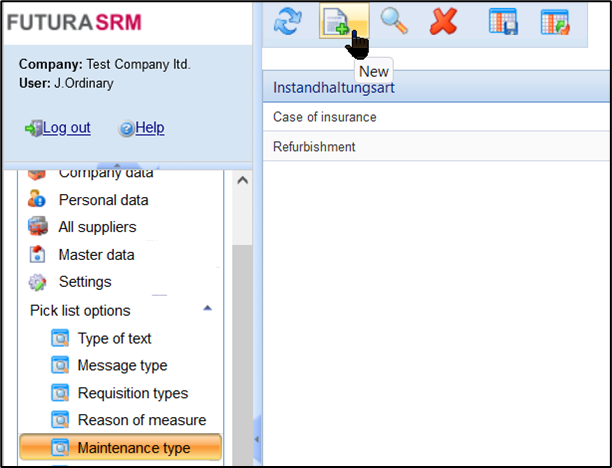 You can maintain the maintenance types in the Administration > Master Data management area > selection fields and are then available to the supplier in the service entry: