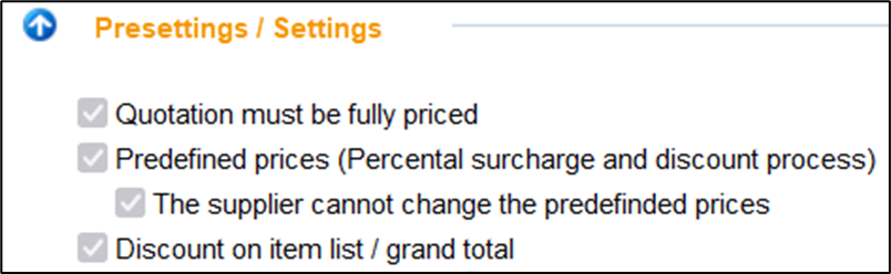 The supplier receives the prices from the request as default prices and cannot change them. He can only set a discount or surcharge at header level.