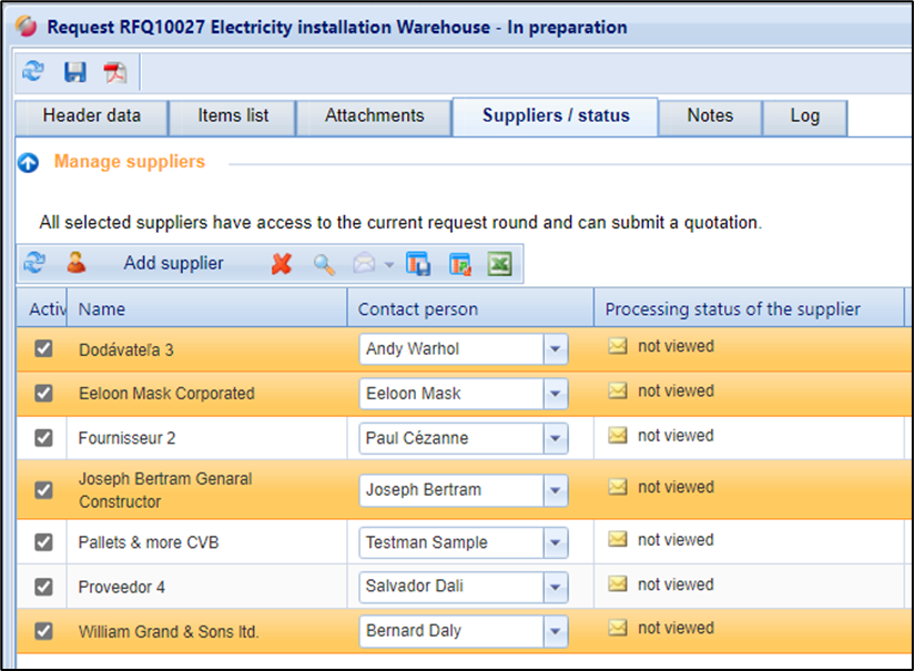 In the course of the request (request has been published), this method can also be used to send e-mails as reminders. Only those suppliers that you have marked will then be reminded.